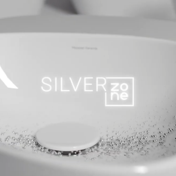 Szkliwo umywalek wolnowiszących KONTRA by Meissen Keramik zawiera jony srebra – zapobiega to namnażaniu się bakterii na jej powierzchni aż do 99,8%. Nanocząsteczki są bezpieczne dla ludzi i dla środowiska. Bakteriobójcze jony zawarte są w samym szkliwie i nie zmywają się, co gwarantuje długotrwały efekt antybakteryjny. Jony srebra pozostają aktywne do 25 lat.