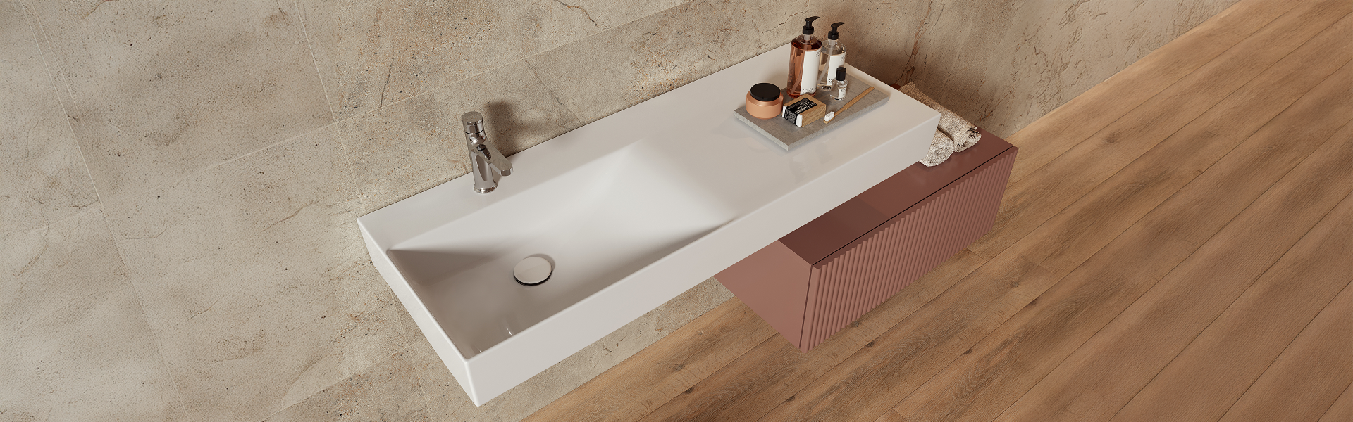 Umywalki wolnowiszące KONTRA by Meissen Keramik łączą ponadczasową estetykę z wysoką jakością wykonania i funkcjonalnością. Ich uniwersalny design sprawdza się zarówno w aranżacjach klasycznych, jak i nowoczesnych. Kolekcja dostępna jest w czterech rozmiarach: 120, 100, 80 i 60 cm, z czego większe modele oferują komfortowy blat, eliminując potrzebę dodatkowych mebli łazienkowych. Brak otworu przelewowego ułatwia utrzymanie czystości i podnosi walory estetyczne jednolitej, błyszczącej powierzchni. Zastosowana powłoka hydrofobowa KlarZone ogranicza osadzanie się wody, a szkliwo z jonami srebra (SilverZone) zapewnia trwałe właściwości antybakteryjne. W pełni szkliwiona powierzchnia użytkowa gwarantuje wysoki standard higieny i komfort codziennego użytkowania.